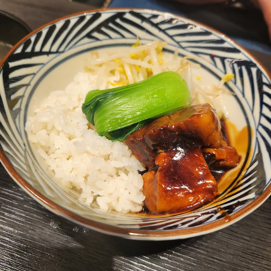 여섯 번째, 식사로 주문한 토마토탕면과 홍소육덮밥이 나왔어요. 토마토 탕면은 토마토의 새콤한 맛이 느끼함을 잡아주더라고요. 어향가지의 느끼함을 토마토 탕면으로 잡아줬어요. ㅎㅎㅎ 홍소육덮밥은 고기가 엄청 부드러웠어요. 밥이랑 함께 먹으니 맛있었고요.